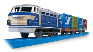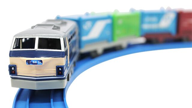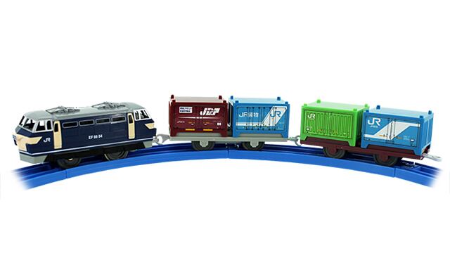 コンテナ車は別売りの「F-01 7000形コンテナ」「F-05 30Aコンテナ」「F-10 19Gコンテナ」や3両編成(別売)の「S-25 EH500金太郎」「S-52 EH200形電気機関車」のコンテナと積み替え遊びができます。