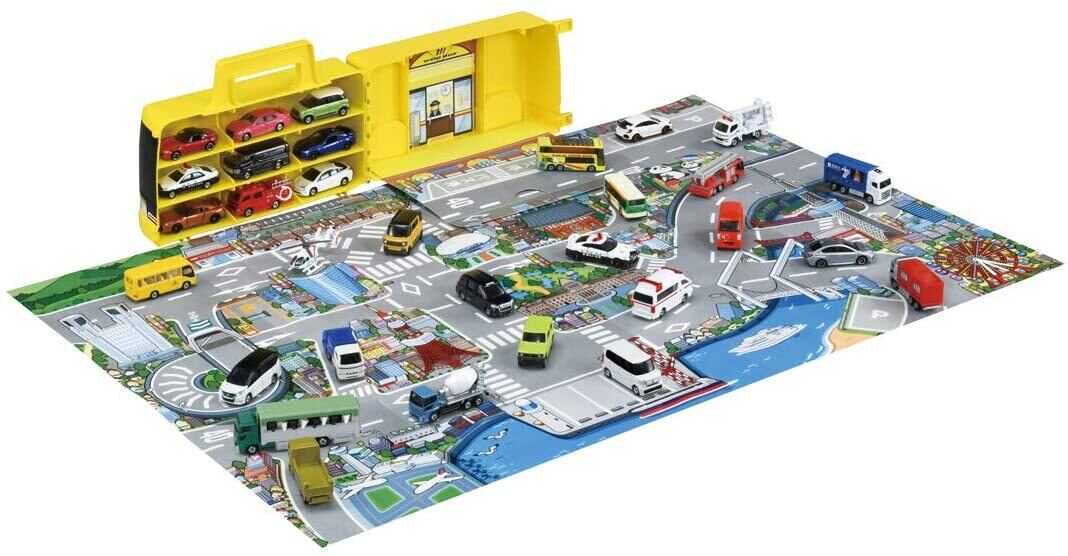 付属している東京の観光名所がたくさん入った「観光ツアーマップシート」を広げてトミカと一緒に遊ぶことができます。