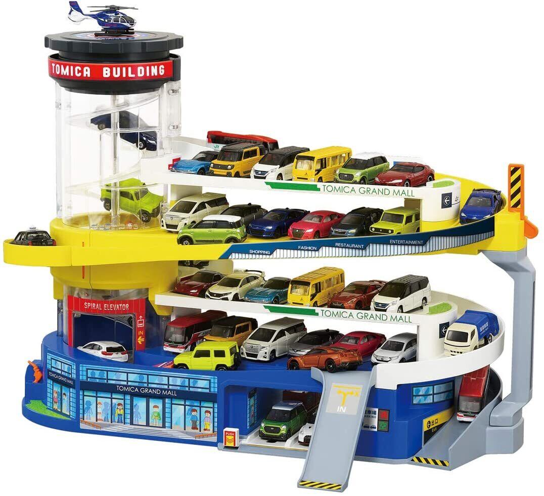 トミカの遊びがたくさんつまった大きなパーキングビル!