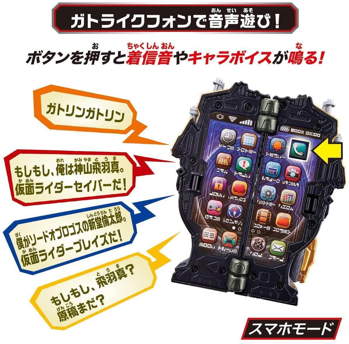 キャラボイスを10種類収録。ガトライクフォン時は着信音、ライドガトライカー時は銃撃音などそれぞれのモードの音声遊びも楽しむことが出来ます。