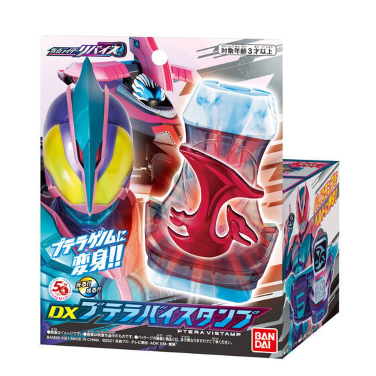 ベルトにプテラバイスタンプをセットしてバイスタンプを倒すと、スタンプ台が回転してLED発光&変身音が発動!仮面ライダーリバイとバイスのゲノムチェンジ遊びが楽しめます。