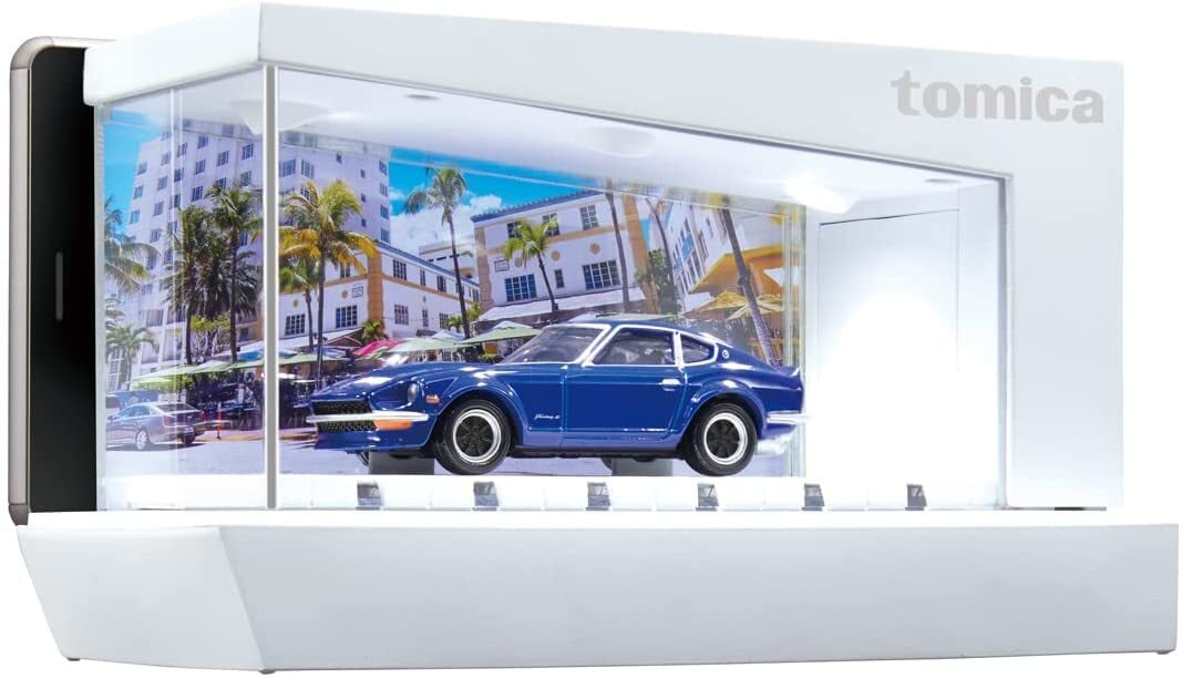 お気に入りのトミカを"かっこよく""おしゃれ"に飾れる、煌めくディスプレイケースが登場。・光量を2段階に調整可能な、LEDライトを内蔵・スマートフォン(別売)をセットすることで、お好みの映像や画像と共に臨場感ある展示が可能・床面には、スマートフォンの光を透過するインジケーターを搭載・約W110mm×H40mm×D50mmまでのミニカーやフィギュアなども飾れる設計・2段まで積み重ねて、展示することが可能